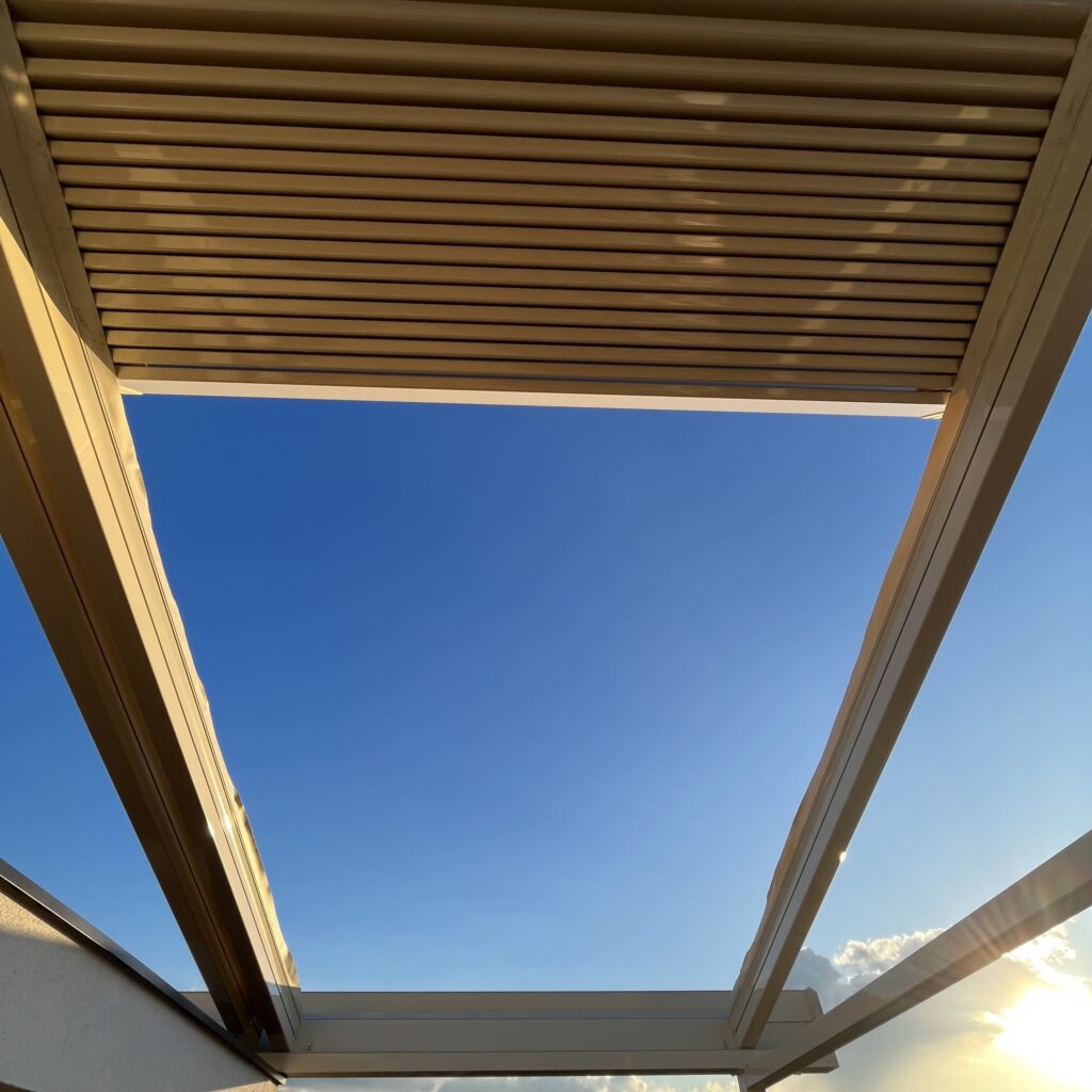 Aluminijske pokretne pergole predstavljaju napredniju i funkcionalniju varijantu bioklimatskih pergola. Zahvaljujući upravljanju putem daljinskog upravljača, mogu se potpuno zatvoriti, čime stvaraju dodatnu prostoriju s pogledom na nebo.