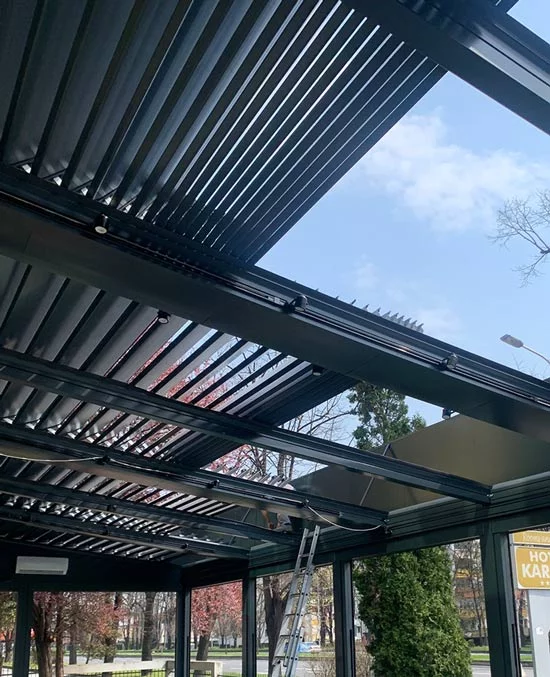 Aluminijska pergola nije samo zaštita, već i elegantno rješenje za veće prostore poput vrtova kafića, restorana, hotela ili bazena.